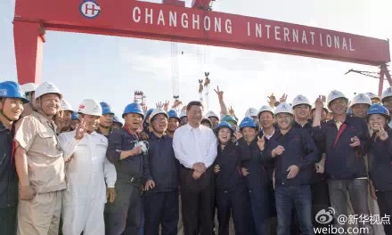 5月25日下午,中共中央總書記、國家主席、中央軍委主席習近平,在浙江省委書記夏寶龍,浙江省副省長、舟山群島新區黨工委書記、舟山市委書記孫景淼等陪同下,視察舟山長宏國際船舶修造有限公司。